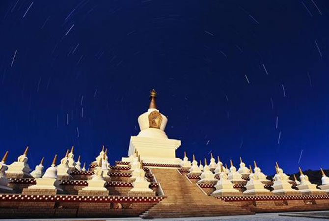 這一天我們的車將行駛在素有“世界屋脊”“世界第三極”的青藏高原。早餐后欣賞“光與影的世界”【新都橋】,翻越【高爾寺山】(海拔4412米),若天氣晴朗,則有幸在山頂一睹蜀山之王【貢嘎山的風(fēng)采】(四川最高峰,海拔7556米,高高的山峰聳立天際,非常的壯觀)抵雅礱江畔康巴小城【雅江】后穿越【剪子彎山隧道】(長228米)接著翻越【卡子拉山】(海拔4718米),來到有著“高原明珠”“世界高城”之稱的【理塘】途中自費參加茶馬古道生活體驗營或天域牧場(自助石板燒烤、穿藏裝、騎馬)觀【毛埡大草原】風(fēng)光,給你一種想策馬奔騰的感覺,感受了遼闊的大草原,我們將翻越形是兔子的【兔兒山】,遠(yuǎn)觀就像兔子的耳朵特別的可愛。之后翻越最為壯觀的、青藏高原最大的古冰體遺址稻城古冰帽【海子山自然保護區(qū)】(海拔4500米)。(海子山是由1145個大小海子和嶙峋怪石組成。猶如上帝失手撒下的一千顆鉆石一般閃爍在山間,其規(guī)模密度為中國乃至世界規(guī)模最大最典型的古冰帽遺跡,精妙絕倫的天然巖畫—鹿子圖騰)。后前往桑堆高原補氧站(高原旅游知識宣傳點)時間10-20分鐘、之后欣賞沿途迷人風(fēng)光、世外桃源般藏式村寨,觀稻城尊勝白塔后,抵達(dá)最后的香巴拉【稻城】。